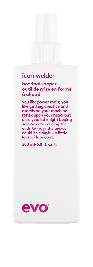 Icon welder heat protection spray offers thermal protection and improved combability, helping to enhance any hair style. this heat protection spray offers uva/uvb protection, shielding hair from sun damage. additional heat protection up to 220°c makes this spray ideal for use before hot tool styling. icon welder can be blended with any evo styling product to add extra hold while maintaining an invisible finish. icon welder heat protection spray is part of the style family, offering styling and finishing options for all hair types.